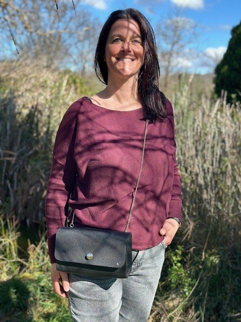 Sac porté croisé en cuir de veau grainé, fermeture Loxx, 23x14x7cm
